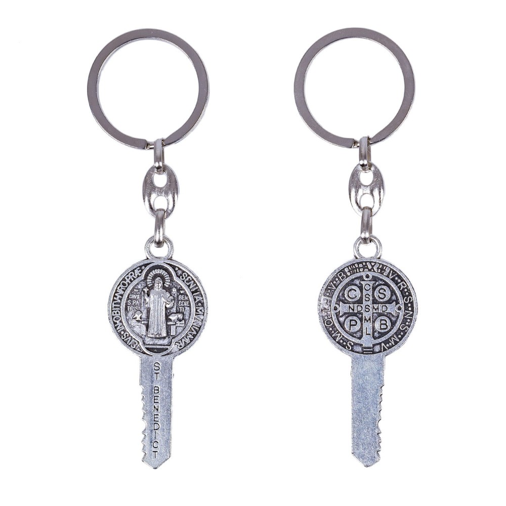Breloc din metal de 5.7 cm, cu crucea si medalia Sf. Benedict.