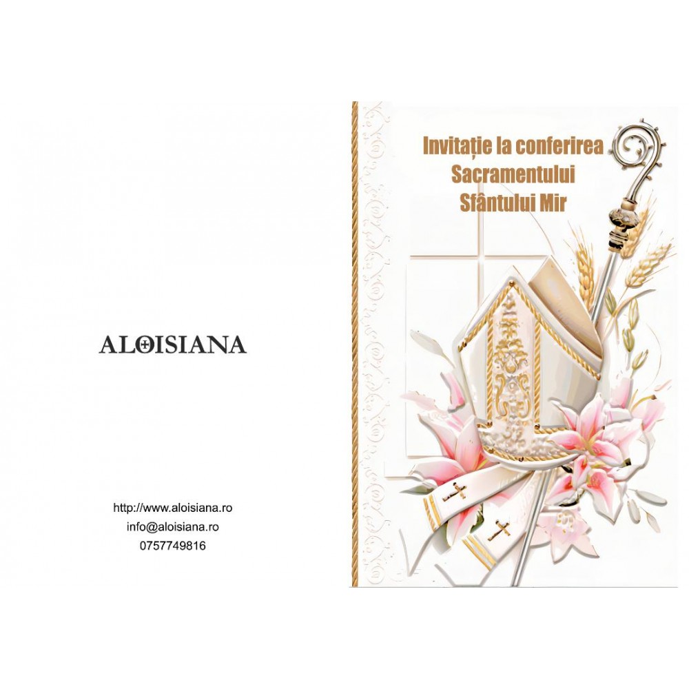 Invitatie cu plic pentru conferirea sacramentului Sfantului Mir, pliat 10x14 cm