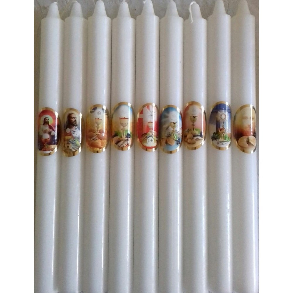 Lumanari pentru prima impartasanie cu simbol euharistic.