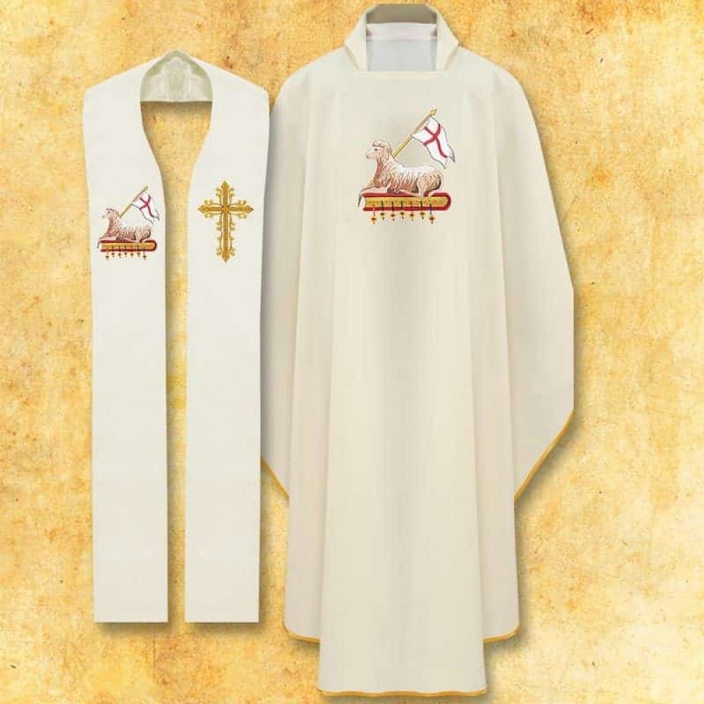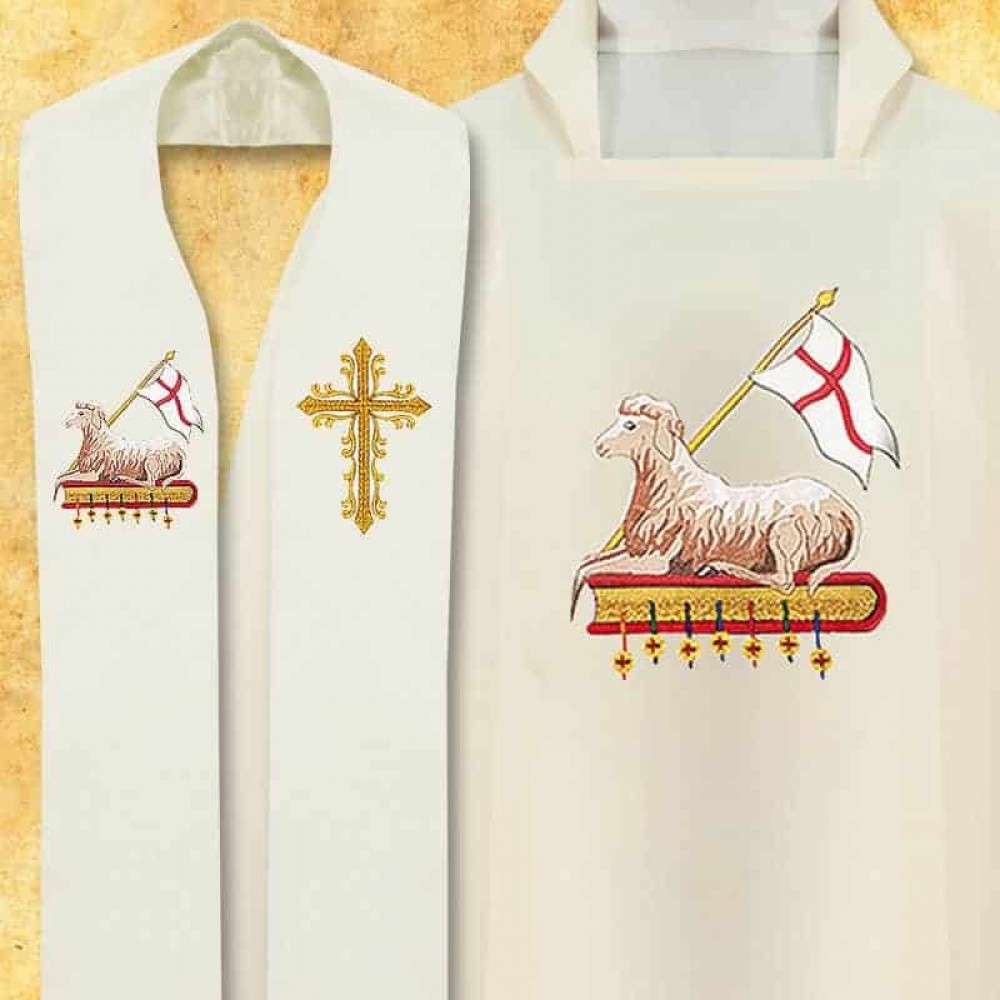 Ornat brodat cu simbol pascal, stola este inclusa.