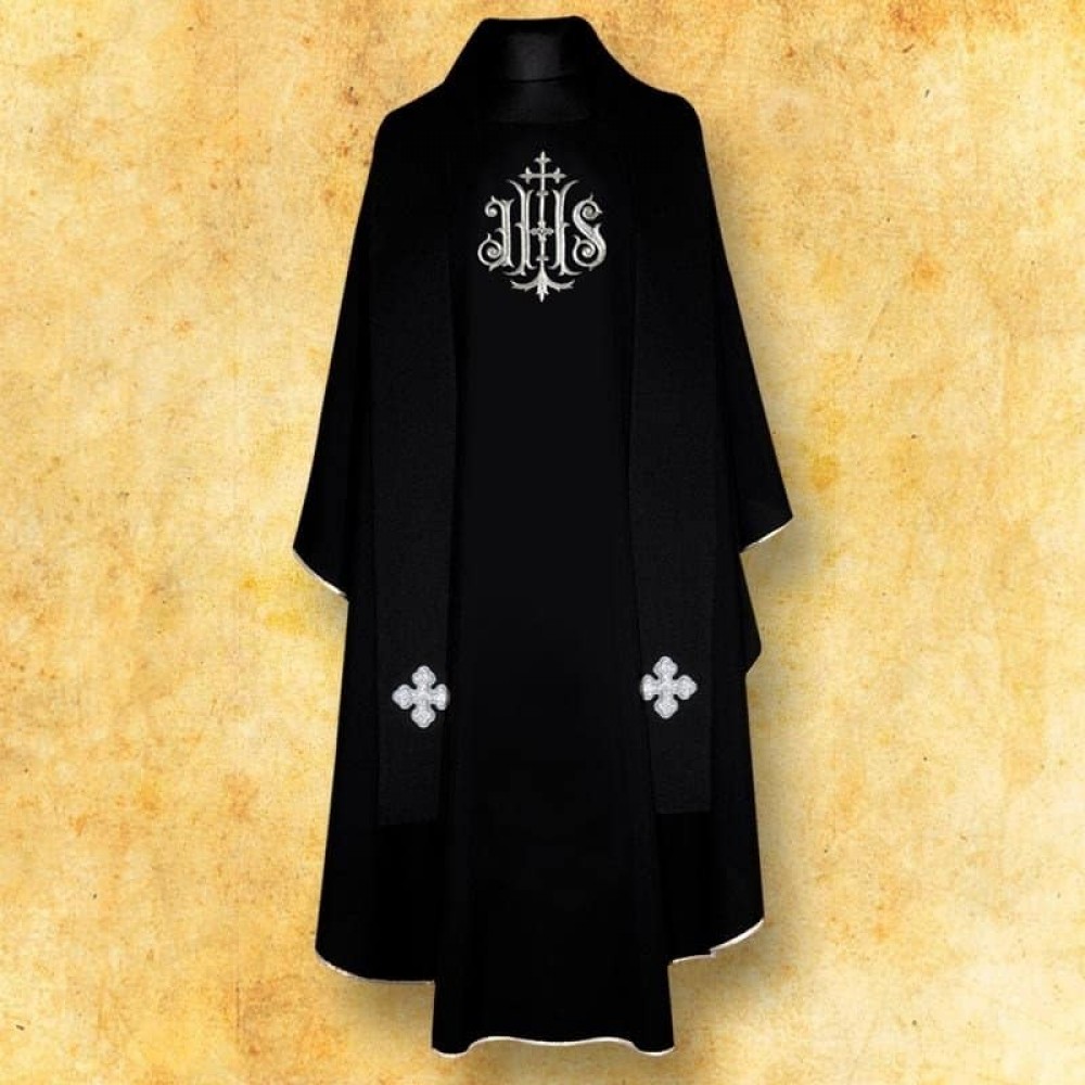 Ornat negru brodat.