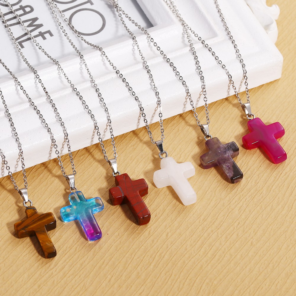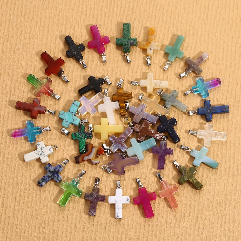 Pandantive din pietre semipretioase, forma cruce, 2/3 cm