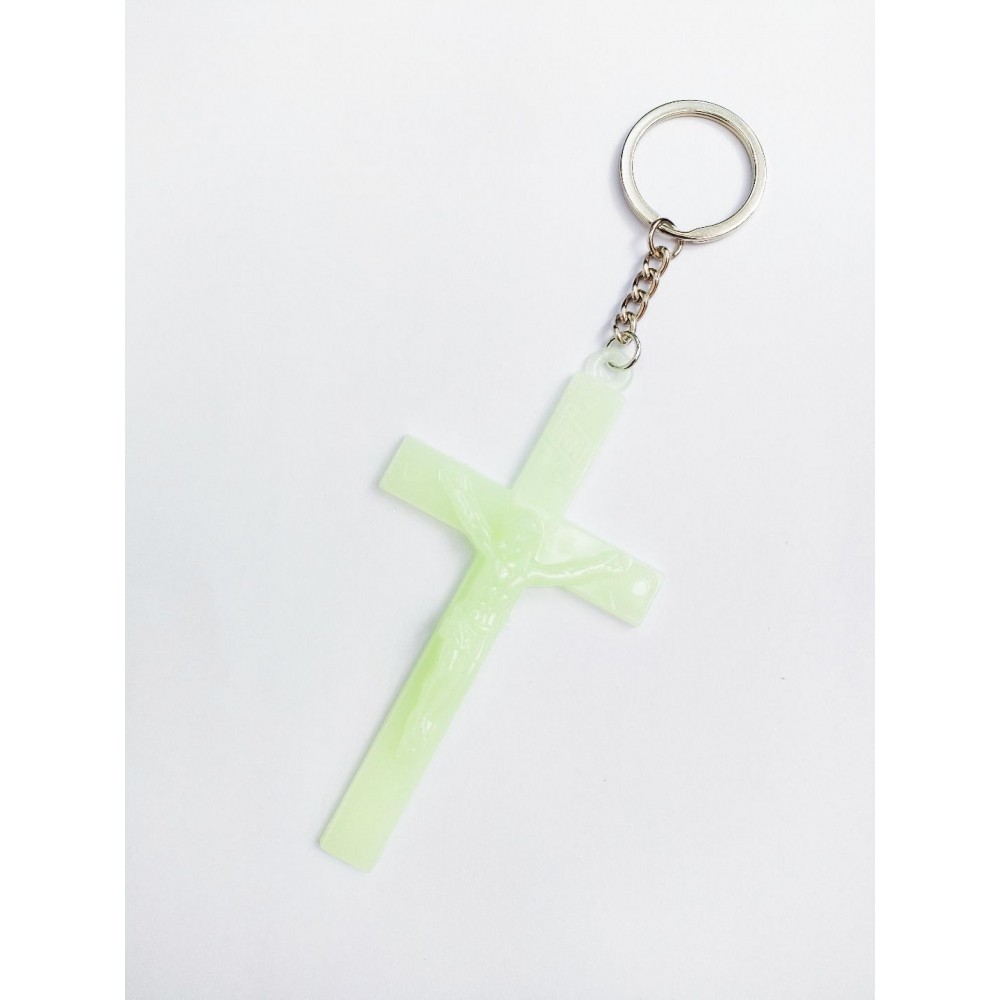 Breloc cu cruce fosforescenta. Lungimea crucii 11 cm, lungime totala16 cm