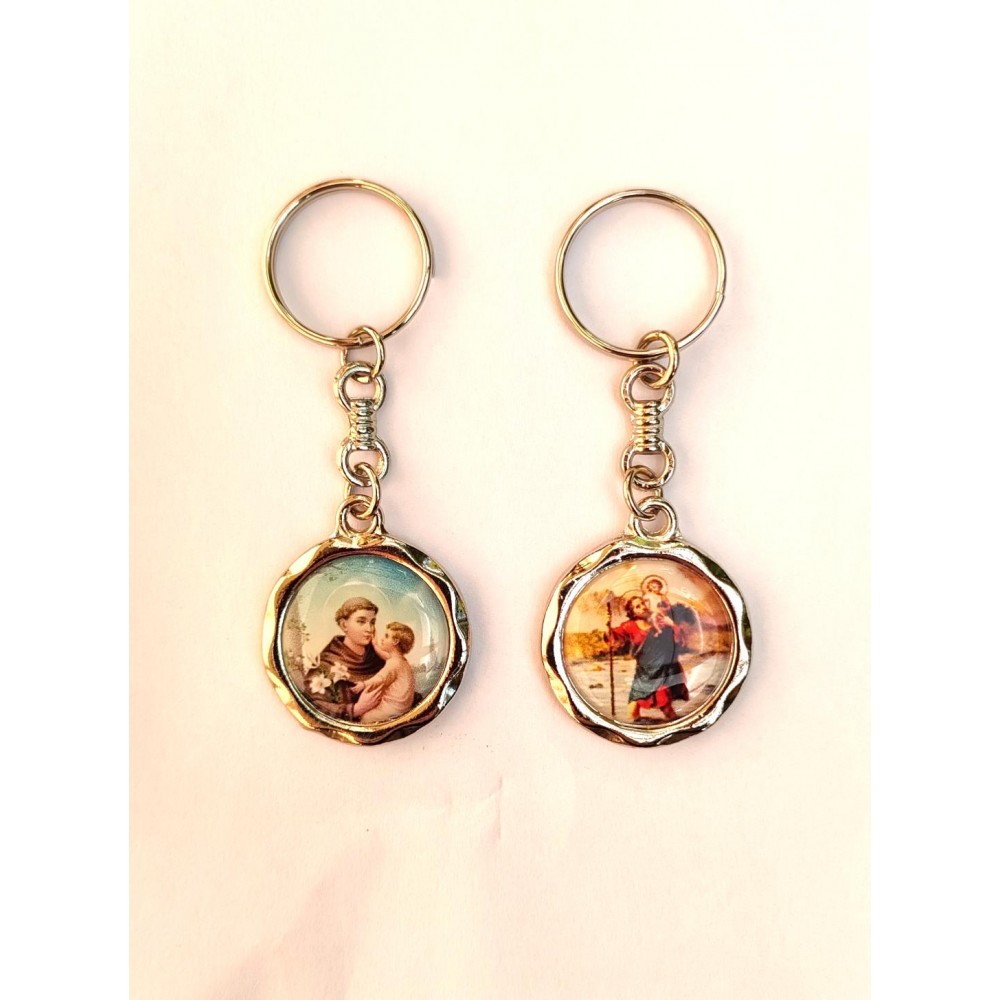 Breloc din metal reprezentandu-i pe Sfantul Cristofor si pe cealalta parte pe Sfantul Anton.