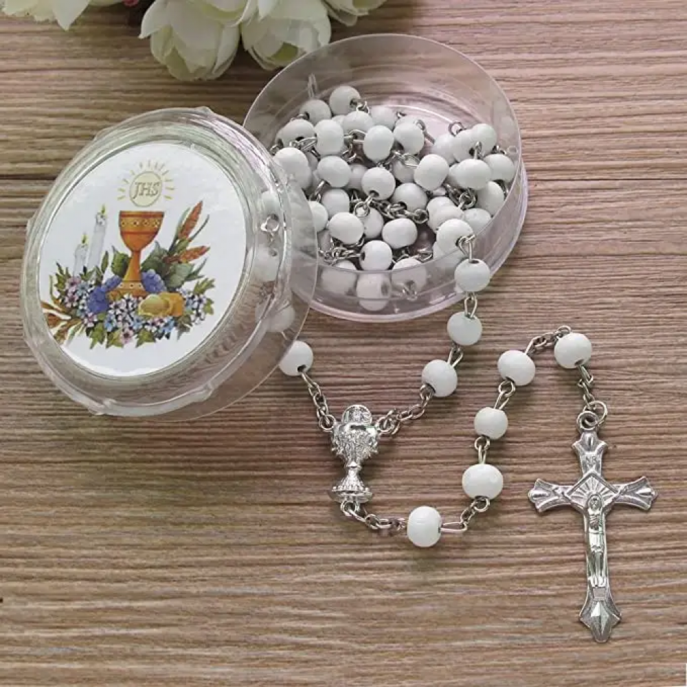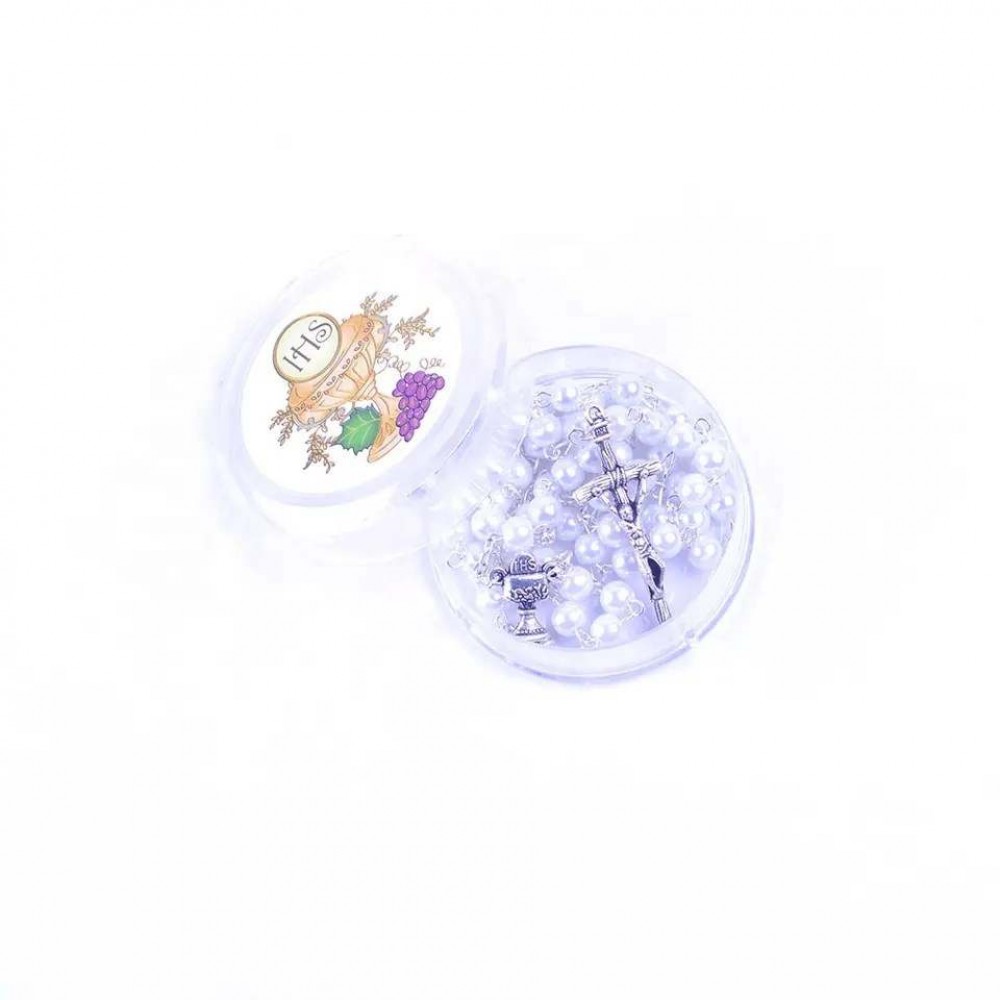 Rozariu pentru prima impartasanie, margele perlate 6 mm.