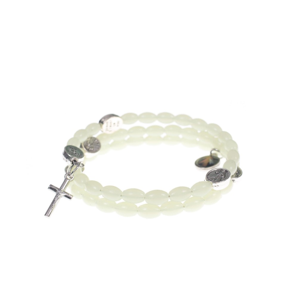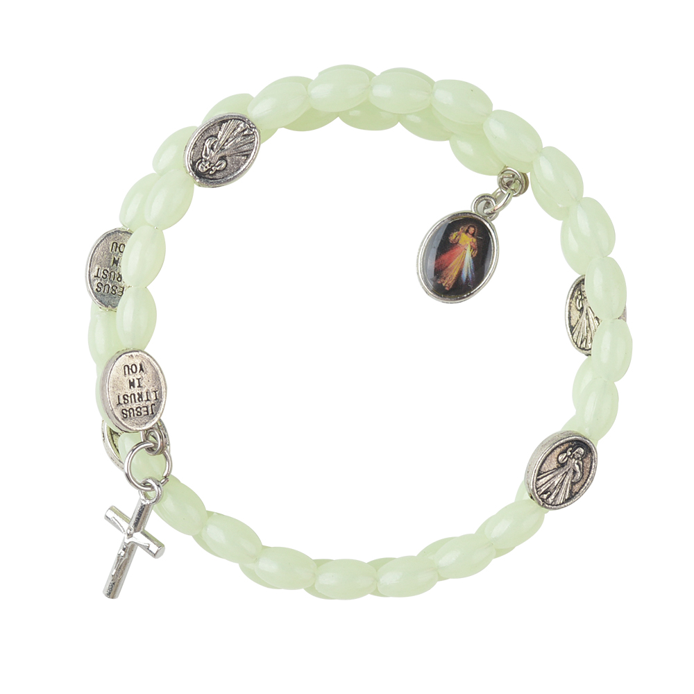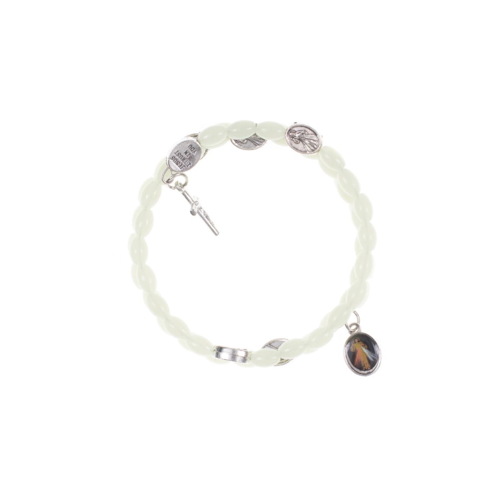 Rozar fosforescent tip bratara cu medaliuta color reprezentand Milostivirea Divina