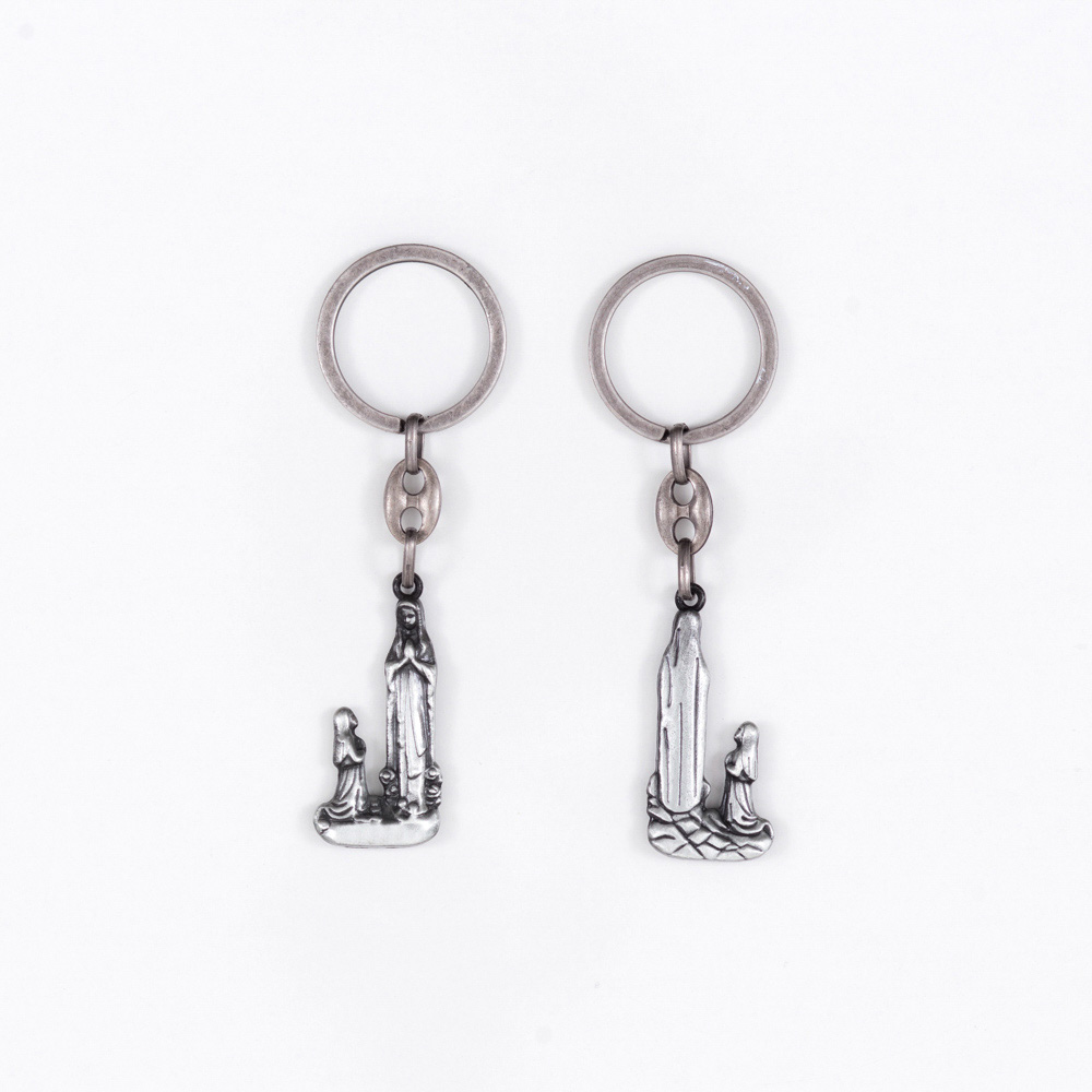 Breloc argintiu cu Maica de la Lourdes, dim.: 2/4.3 cm, L: 9.5 cm