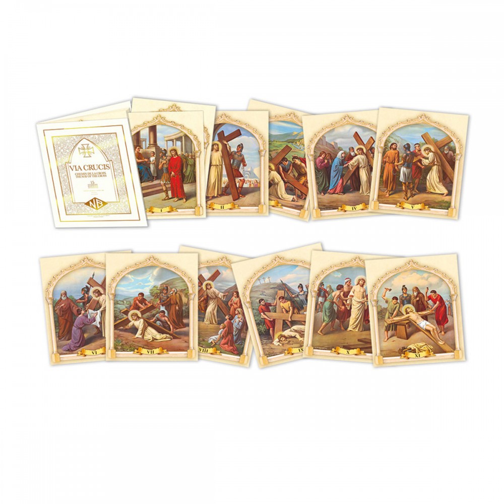 Calea crucii pe suport de hartie cu insertii aurii, 14 statiuni+1