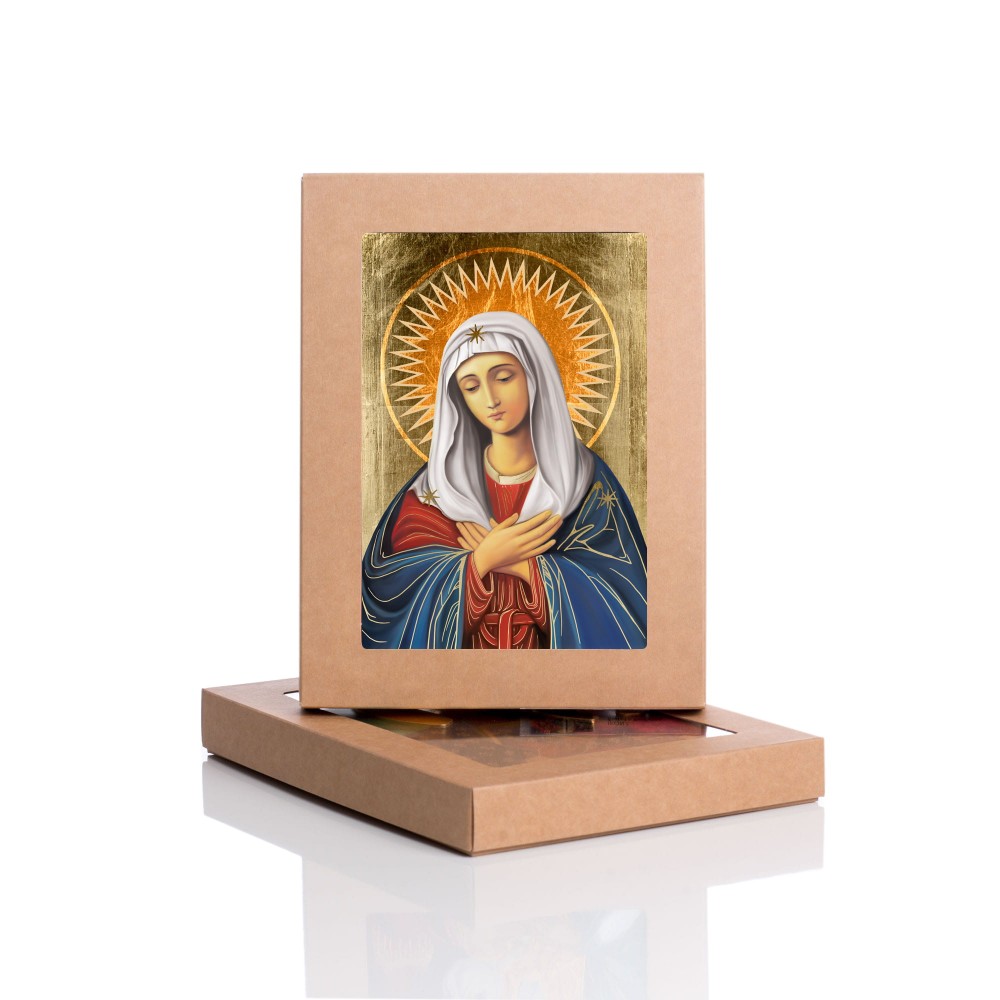 Conform certificatului din spatele imaginii, icoana este realizată cu o tehnologie unică care permite reproducerea fidelă a pictogramei originale. Imaginea este realizată din lemn de arin dur, rezistent la deformare și fisurare.