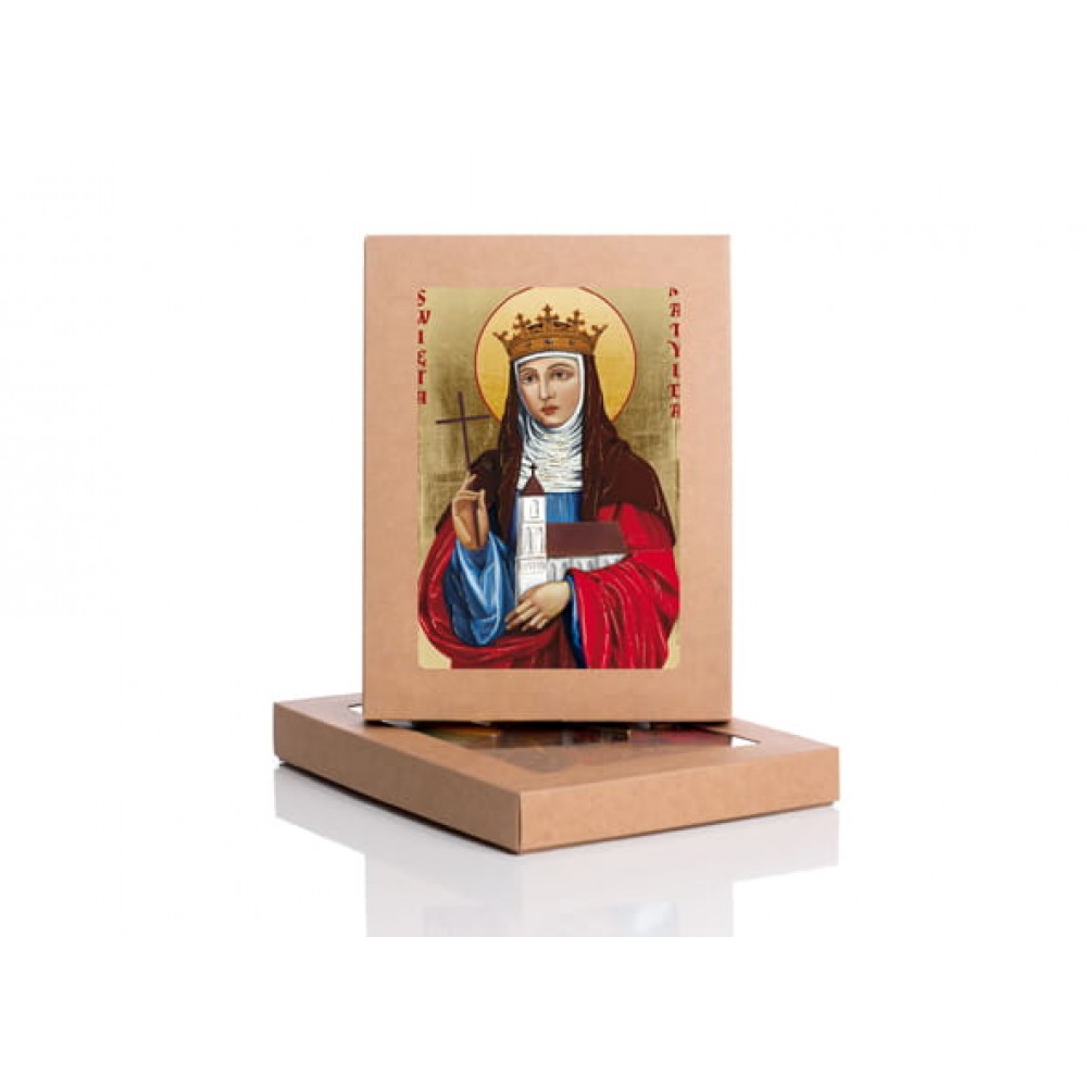 Conform certificatului din spatele imaginii, icoana este realizată cu o tehnologie unică care permite reproducerea fidelă a pictogramei originale. Imaginea este realizată din lemn de arin dur, rezistent la deformare și fisurare.