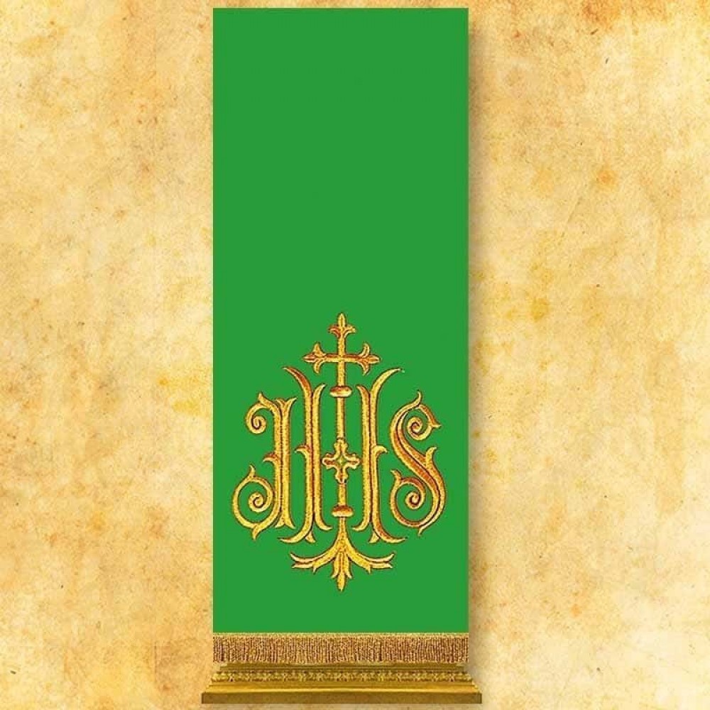 Antipendiu brodat pentru amvon cu simbolul JHS.