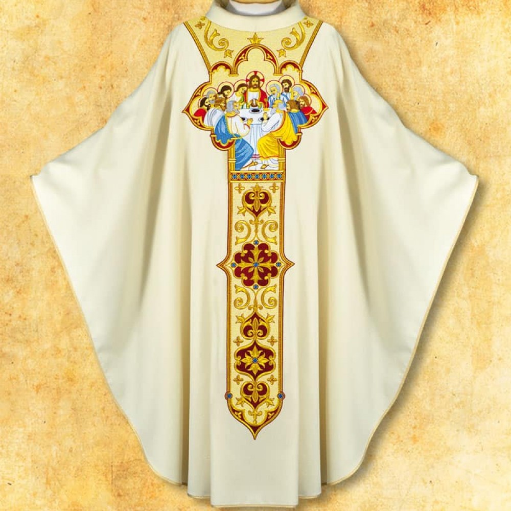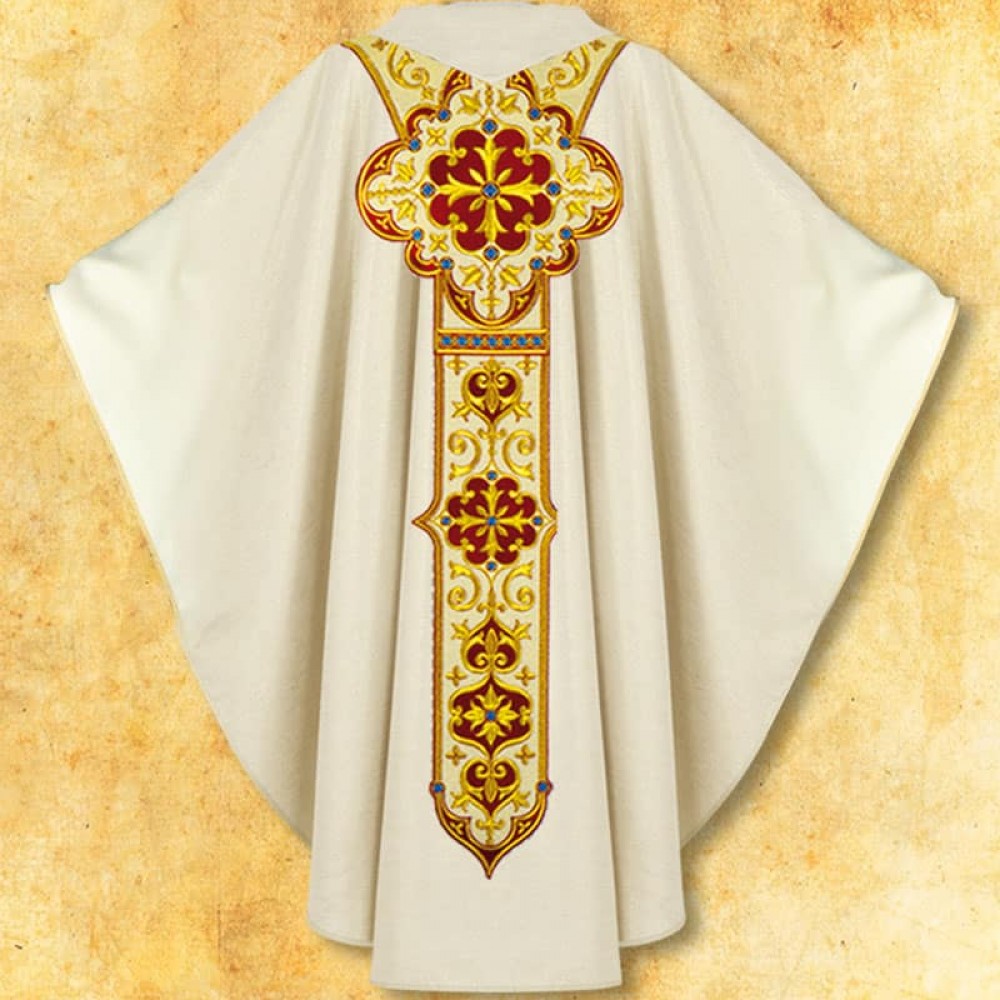 Ornatul este realizat din material modern de inalte calitate: ”Sacroline „ ectu, brodat cu fir auriu. Tesatura este extrem de moale la atingere.