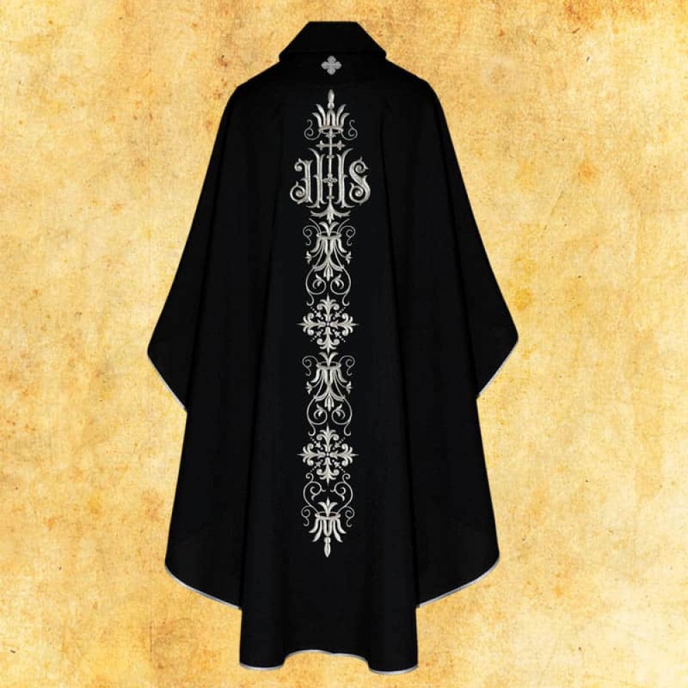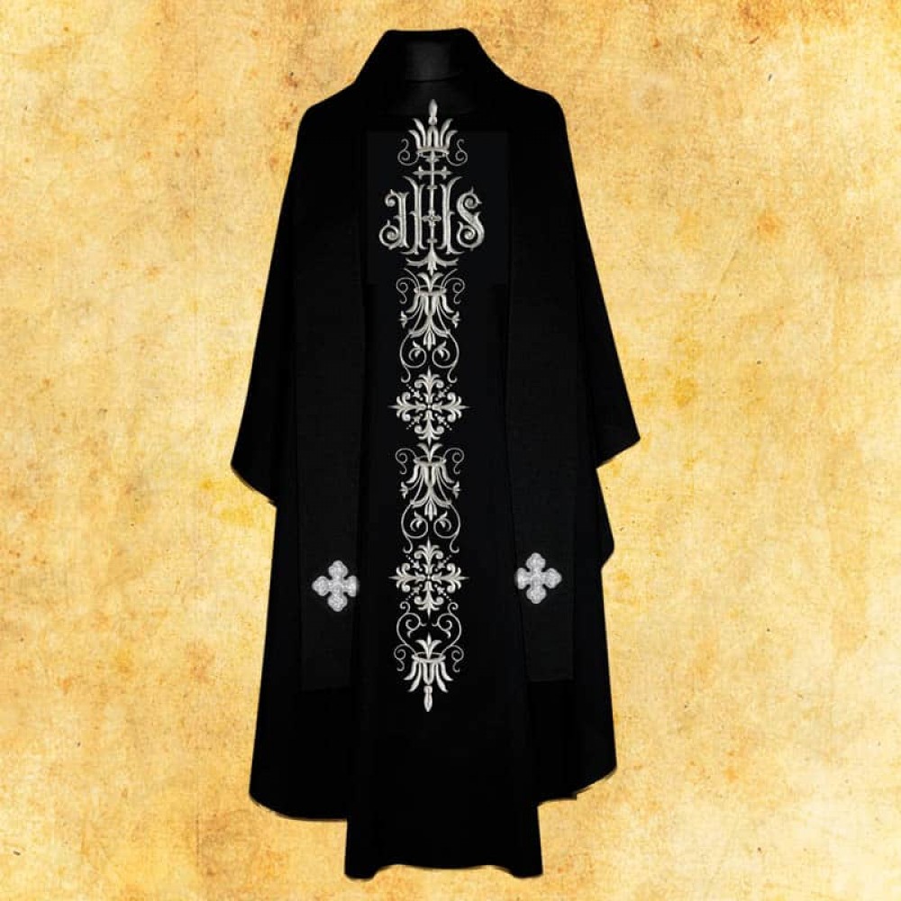 Ornat negru brodat.
