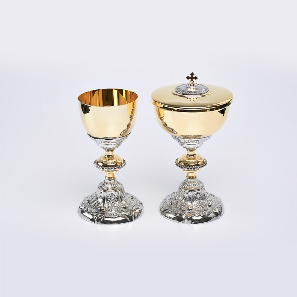 Potir (22 cm) si ciboriu (26 cm) in stil baroc, diametru 14 cm