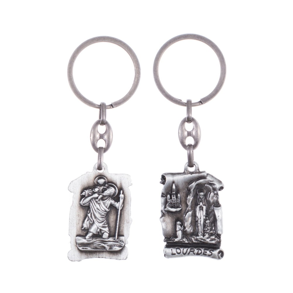 Breloc din metal cu Fecioara de la Lourdes-Sf. Cristofor