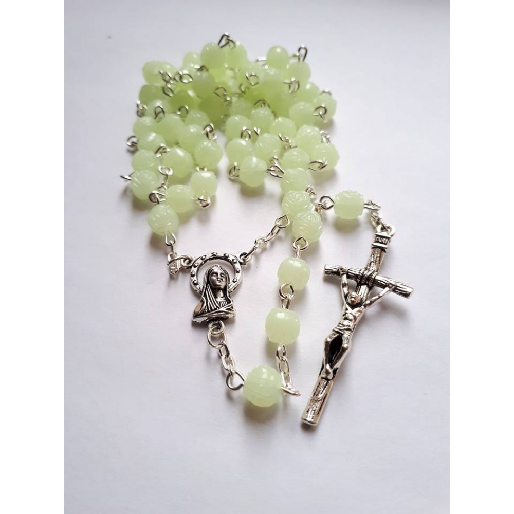 Rozariu fosforescent de 8 mm in forma de trandafir.