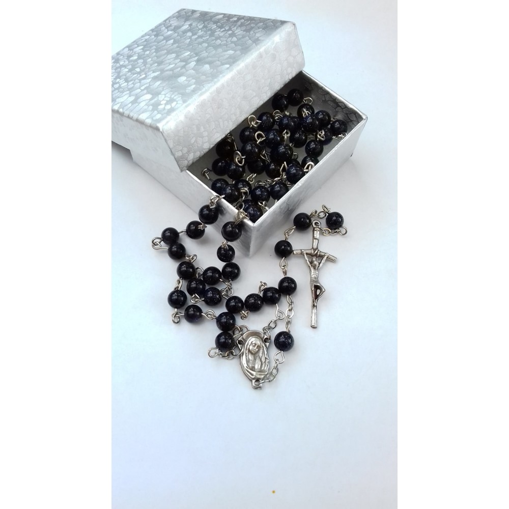 Rozariu piatra soarelui neagra sfere, 6 mm.