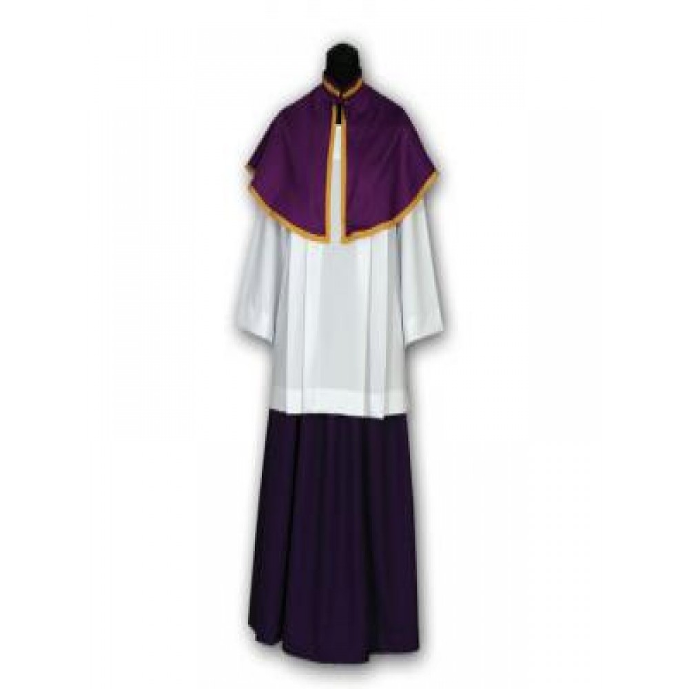 Haine pentru ministranti, set complet, disponibile in trei culori liturgice: violet, rosu si verde.