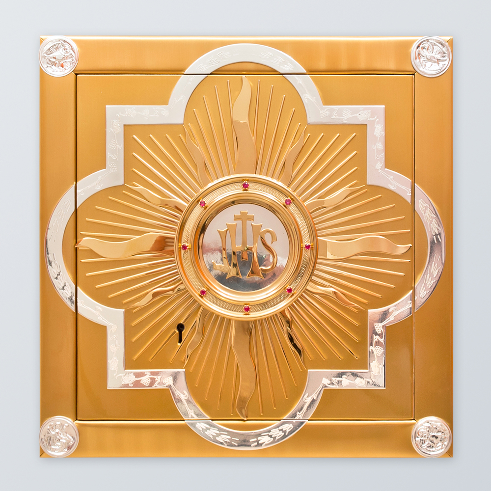 Tabernacolul este fabricat din oțel cu o grosime de 3 mm și patinat. Suprafața exterioară este protejată de un lac special pentru protecție suplimentară. Tabernacolul are pereți dubli, in interior cu material ignifug.